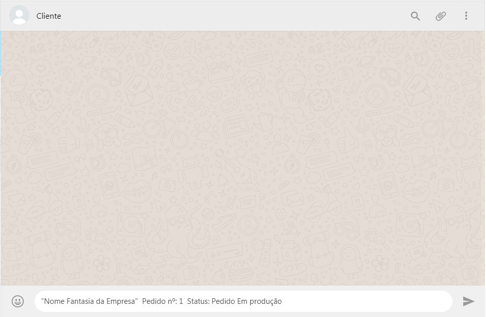 Após a configuração, ao alterar o status de um pedido será exibida uma tela com o texto que deseja ser enviado e um campo para informar o telefone (o telefone será preenchido se estiver informado no cadastro do cliente):