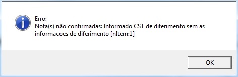 Rejeição: Informado CST de diferimento sem as informacoes de diferimento
