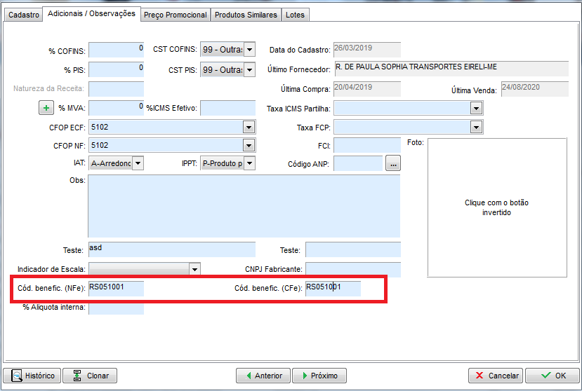 Após conferir, clique na aba Adicionais/observações e verifique o Cód. Benefic. que está preenchido.