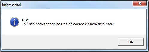 A mensagem irá ocorrer sempre que o CST estiver divergente em comparação com o Código do Benefício utilizado, por exemplo, está sendo utilizado um código do benefício refere-se a Isenção e o CST informa que é Não Tributado: A empresa configurou o produto com CST 041 - Não Tributado, e informou o Código do benefício PR810002, com essa combinação retornará a mensagem (lembrando que esse é apenas um exemplo, pode ocorrer com várias outras combinações de CST e Código do Benefício).