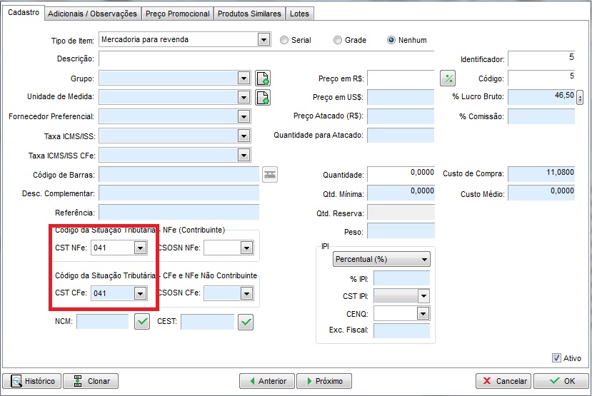 Após, abra o cadastro do produto em questão e confira qual CST está sendo utilizado.