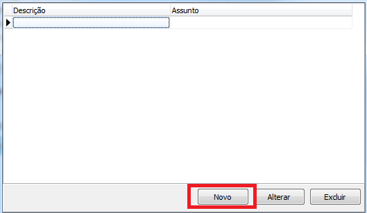 Clicando no botão Cadastro de Modelos de e-mail será possível definir mensagem padrão de envio de e-mails, acesse o botão e clique no botão Novo;