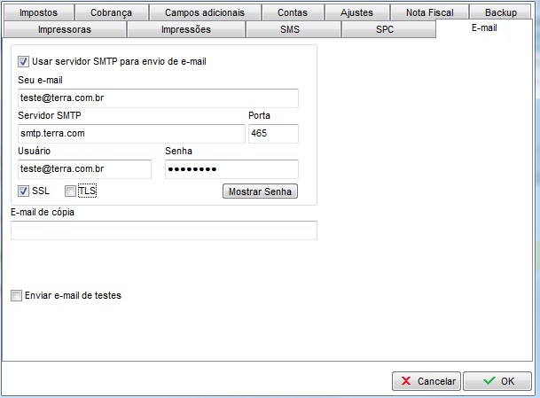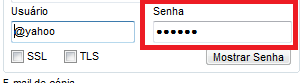 Caso utilize e-mail da Terra, realize as configurações conforme exemplo abaixo: