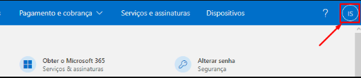 Em seguida clique em sua foto no canto superiror direito no site da Microsoft como mostra a imagem.