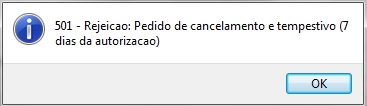 A mensagem ocorre sempre quando o cancelamento ultrapassar o prazo estipulado pela SEFAZ. Cada UF possui seu prazo de cancelamento, não existe um prazo fixo. Abaixo iremos disponibilizar o prazo de cancelamento de cada UF: