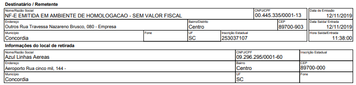 Local de Retirada/Local de Entrega - Nota Fiscal Eletrônica