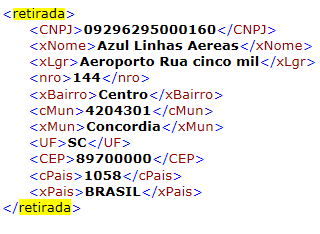 Além disso, o XML contará com mais uma Tag, da Retirada:
