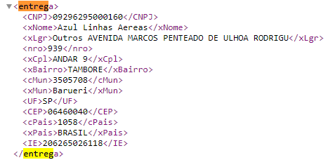 No XML referente a nota emitida, será adicionada a TAG da Entrega;