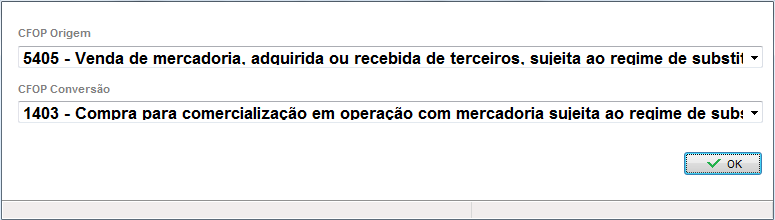 Este recurso é utilizado em casos onde se faz necessária a conversão do CFOP da saída emitida pelo fornecedor, em um CFOP de entrada para o seu sistema. Por exemplo, o fornecedor emitiu uma nota para sua empresa com o CFOP 5405, mas é necessário que na entrada ele transforme-se em 1403, esse recurso permitirá que sejam parametrizados os CFOPs ao importar os XMLs das notas de compra. O CFOP alterado será dos produtos na nota.