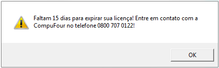 Quando faltar 15 dias para expirar o prazo de suporte técnico, e o cliente for da CompuFour (comprou diretamente conosco), será apresentada a seguinte mensagem: