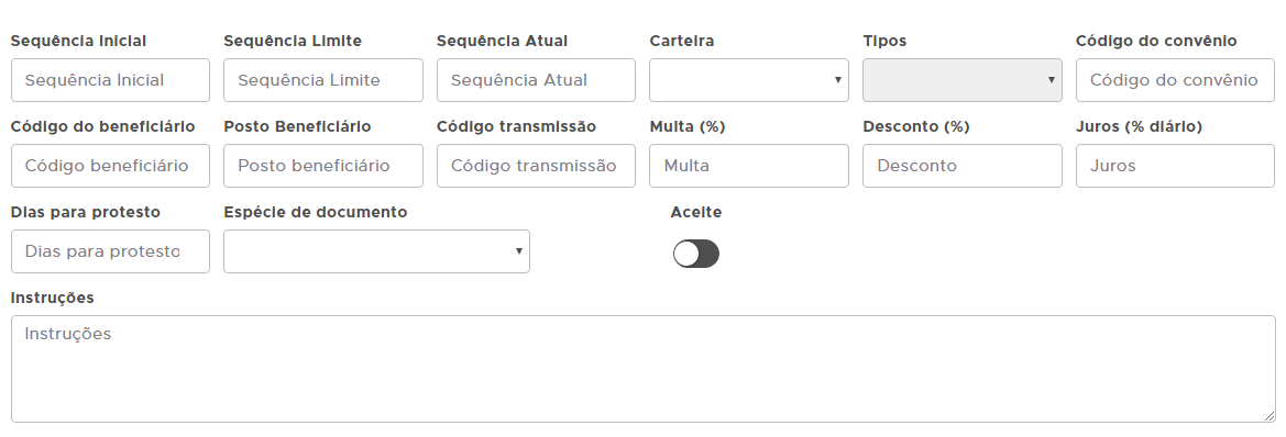 Atenção! Para configurar corretamente o boleto, é necessário verificar os dados diretamente com o seu banco!