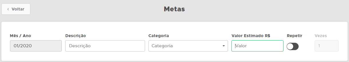 • Repetir: Marque quantas vezes deseja repetir a meta cadastrada.