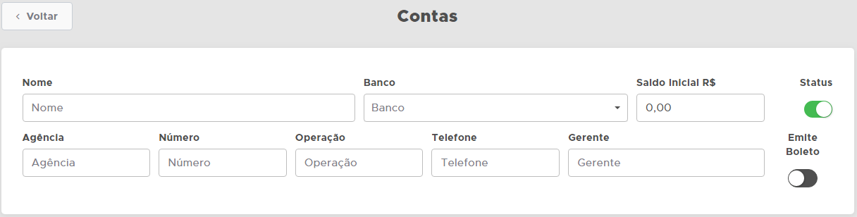 • Nome: Nome da conta a ser cadastrada, por exemplo, Banco do Brasil.
