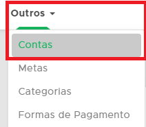 É possível cadastrar uma conta bancária para realizar as movimentações financeiras, para isso, clique em Financeiro - Outros - Contas.