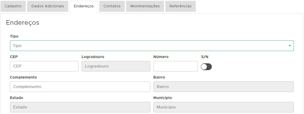 Aqui você poderá informar os dados de endereço do cliente: