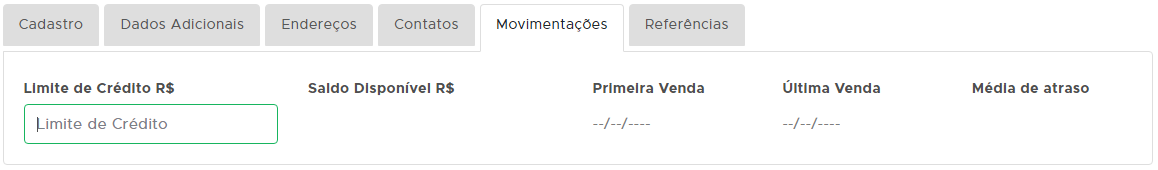 Aqui você poderá estipular o Limite de Crédito do cliente.