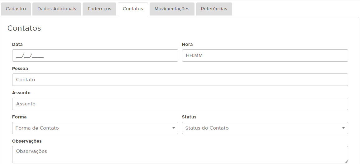 Nesta aba é possível adicionar contatos com o cliente a serem realizados.