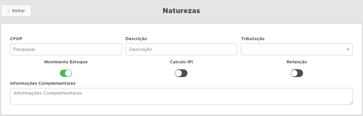 • Descrição: Para você definir a descrição (nome) a ser exibido nessa natureza.