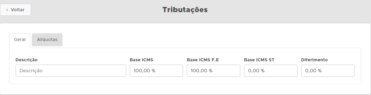 Cadastro de Tributações (Taxas ou Alíquotas)