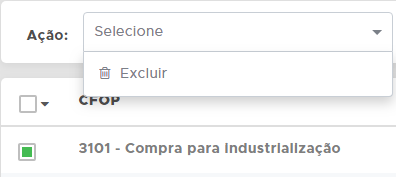 Para excluir uma natureza cadastrada, selecione e na ação escolha Excluir.