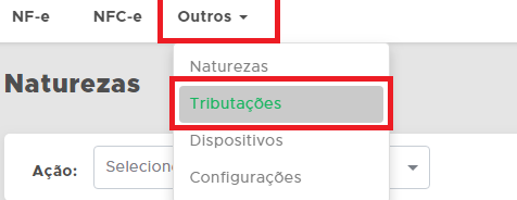 Para cadastrar uma Tributação, clique em Fiscal - Outros - Tributações: