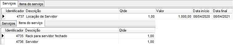É possível configurar para que sejam exibidos os Serviços e os Itens do serviço sem precisar abrir a locação. Para isso, dentro do módulo Locação, clique em Exibir e marque a opção Detalhes. Assim, no rodapé do programa serão listadas tais informações: