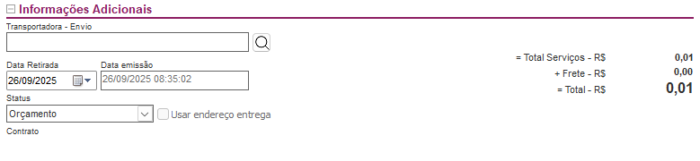 Feito isso, em Informações Adicionais podemos fazer controles mais específicos com a locação. Além de definir uma data para retirada, podemos definir o Status: