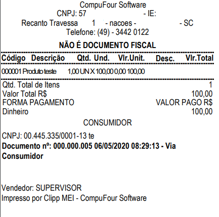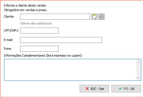 Ao clicar em OK (F3) o documento será finalizada, caso não tenha sido informado nenhum cliente o sistema registrará como “Clientes diversos”.