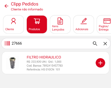 Abrirá a tela para consulta, poderá inserir a descrição, identificador, código, referência ou código de barras.