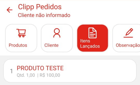 Na aba Itens Lançados, poderá visualizar os itens lançados no pedido.