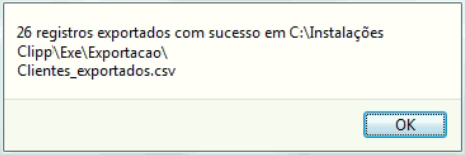 O arquivo será salvo por padrão na pasta Exe onde o programa está instalado, juntamente com a quantidade de registros exportados