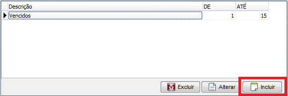 Será apresentada a tela para poder informar o filtro, clique no botão Incluir.