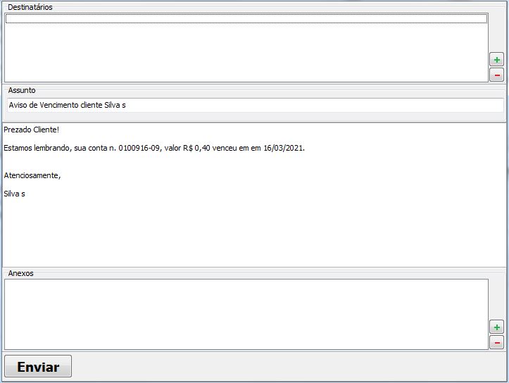 Caso selecione a opção e-mail e utilize o servidor SMTP do Clipp para envio dos e-mails, será carregado na tela o quadro para preenchimento do e-mail: