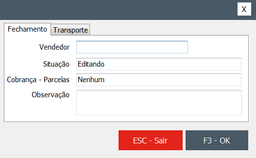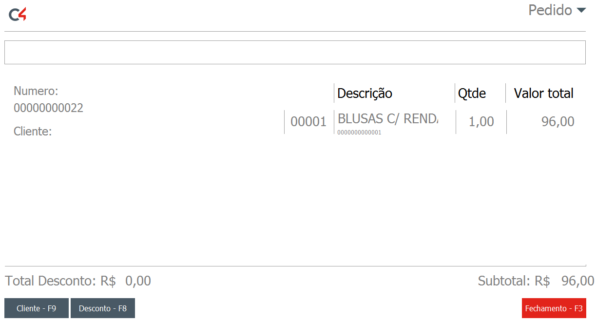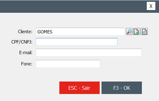 Como o lançamento do cliente é obrigatório, ao pressionar F3 para finalizar o pedido será solicitado caso não informado anteriormente.