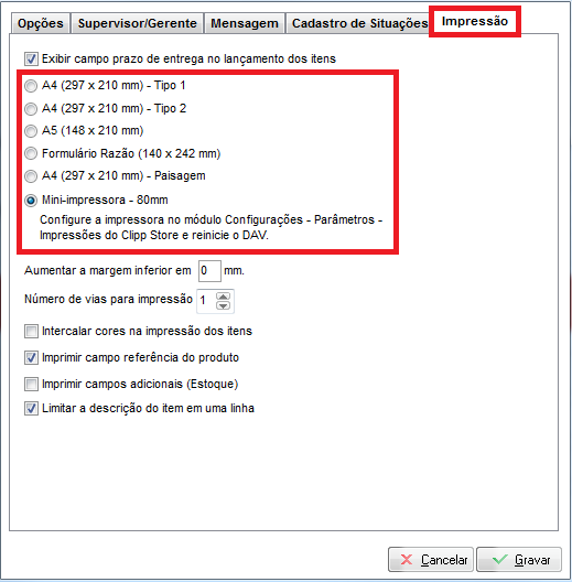 Para determinar a impressora, acesse as configurações dos DAVs e marque na relação:
