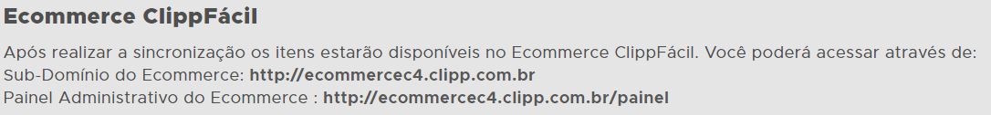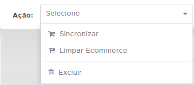 • Limpar Ecommerce: Remove os itens já sincronizados com o Ecommerce.