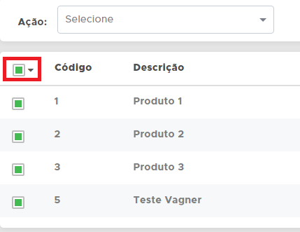 Caso queira, poderá marcar o checkbox para enviar todos os cadastros para o ecommerce, caso prefira enviar somente alguns, selecione-os individualmente.