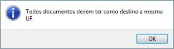 Todos os documentos devem ter como destino a mesma UF - Ao emitir MDF-e