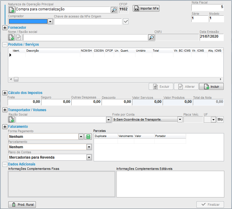 Por fim, com todos os campos preenchidos poderá Finalizar a nota.