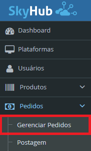 Após logar, clique em Pedidos - Gerenciar Pedidos.