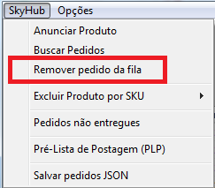 Quando um pedido não for mais utilizado, você poderá remove-lo da fila, clicando no menu SkyHub - Remover Pedido da Fila.