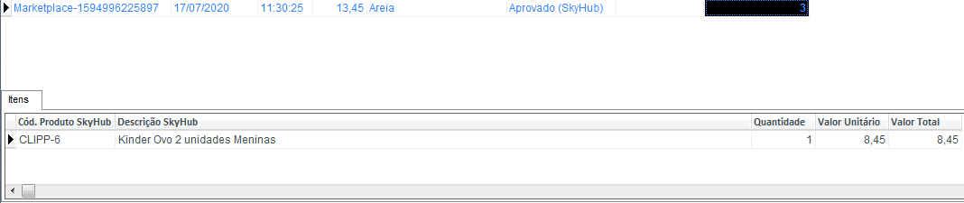 Clicando sobre o pedido serão apresentados os itens no rodapé: