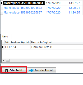 Antes de criar o pedido é importante verificar se o produto deste pedido possui vínculo com o SkyHub, você poderá verificar consultando aqui