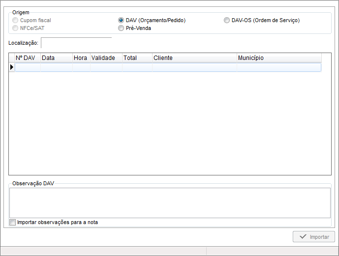 O sistema permite importar mais do que um DAV para a nota, para efetuar este procedimento, basta clicar no botão Importar novamente após ter concluído a importação anterior.