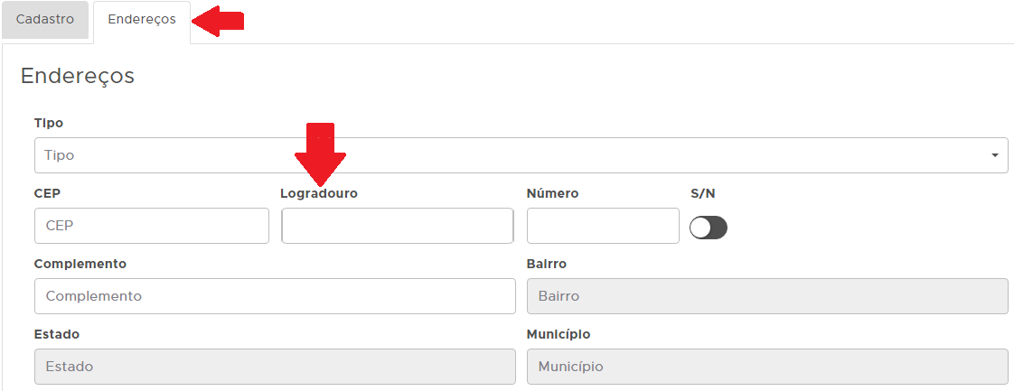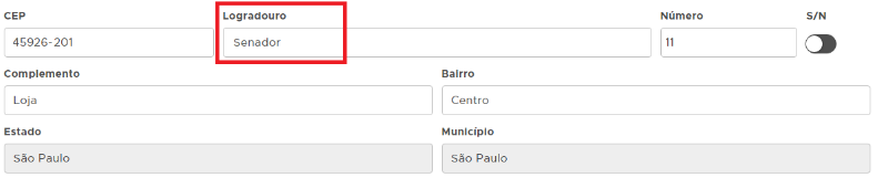 Em seguida, clique na aba Logradouro e verifique se o cadastro está correto: