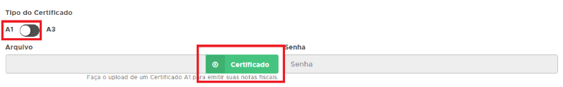 Indique que o modelo do certificado digital é A1 e clique no botão Certificado;