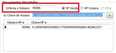 Em seguida, marque a opção NF Venda, preencha o número da nota de compra em questão, pressione enter e em seguida, clique no botão