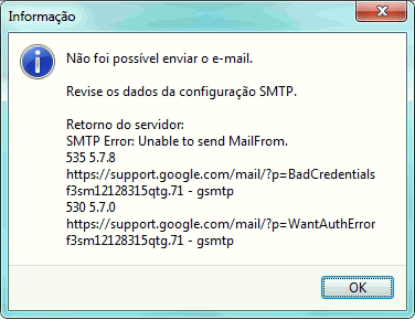 Ao enviar e-mail pelo Clipp via SMTPcom um Gmail configurado, ocorre a seguinte mensagem: