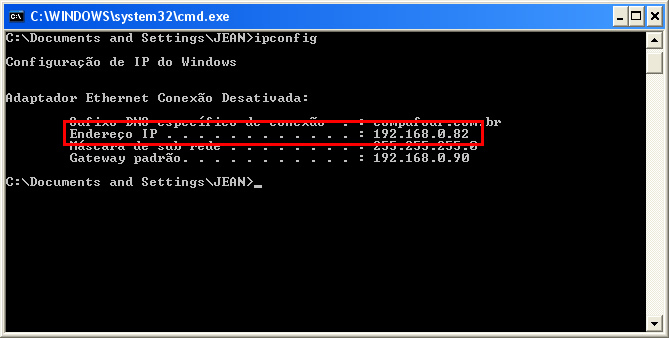 Persistindo a situação poderemos fazer um ajuste no arquivo clipp.ini, caso o sistema esteja instalado no terminal. Primeiro precisamos de uma informação do computador onde está a base de dados, precisamos saber o endereço IP utilizado no mesmo. Para isso siga os procedimentos abaixo listados: