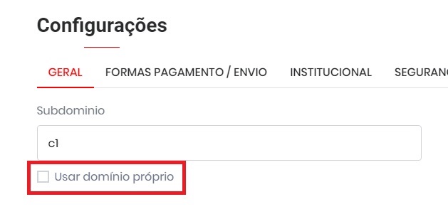 Em seguida, na aba Geral marque a opção Usar domínio próprio;